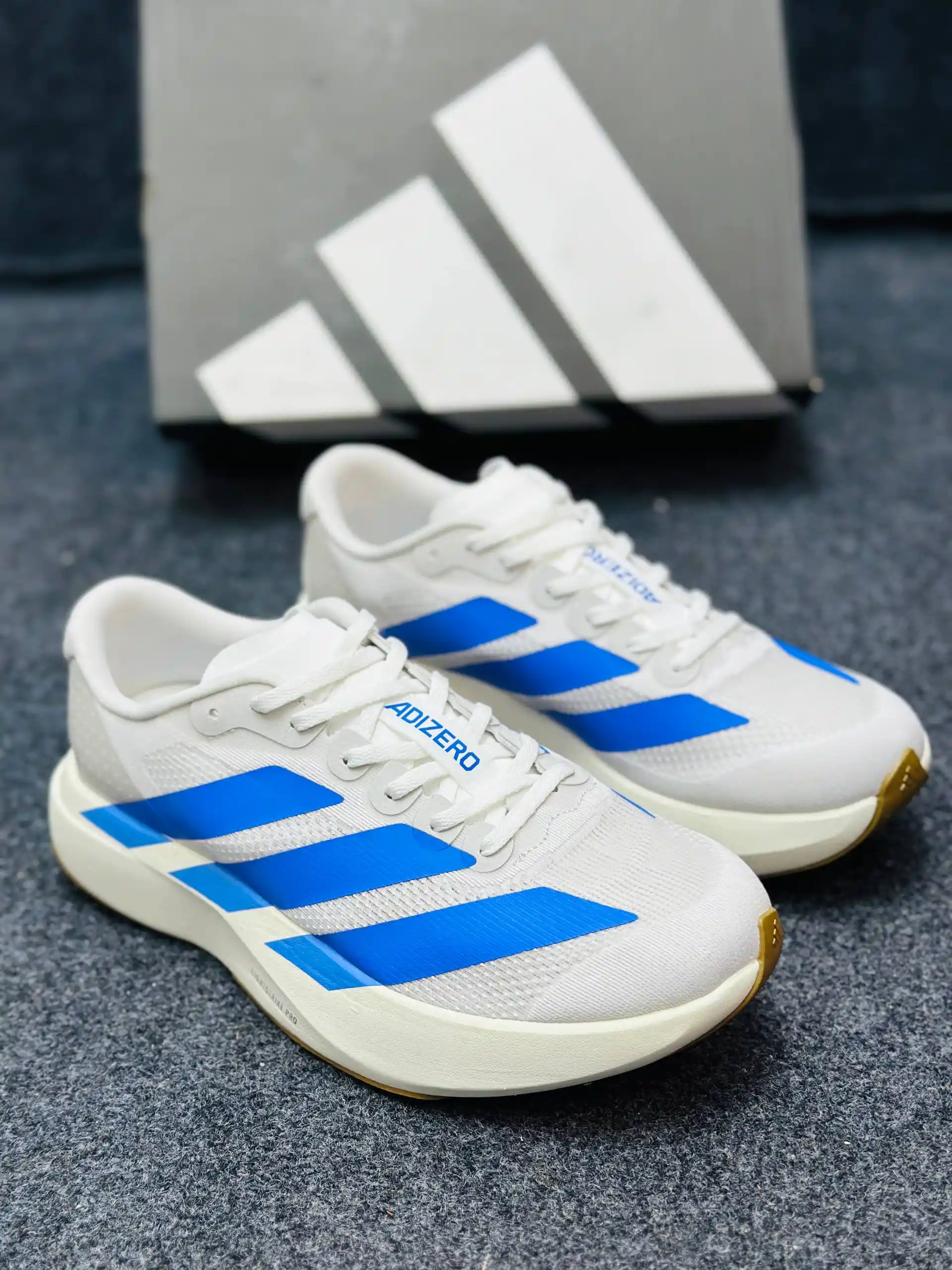 Run faster, train harder, and stay stylish with the Adidas Adizero — the ultimate performance sneaker built for speed and comfort. Engineered with Lightstrike Pro cushioning and a lightweight breathable mesh upper, this shoe delivers exceptional energy return and ventilation for long runs or daily workouts. Its durable rubber outsole ensures maximum grip on any surface, giving you stability and confidence with every step.